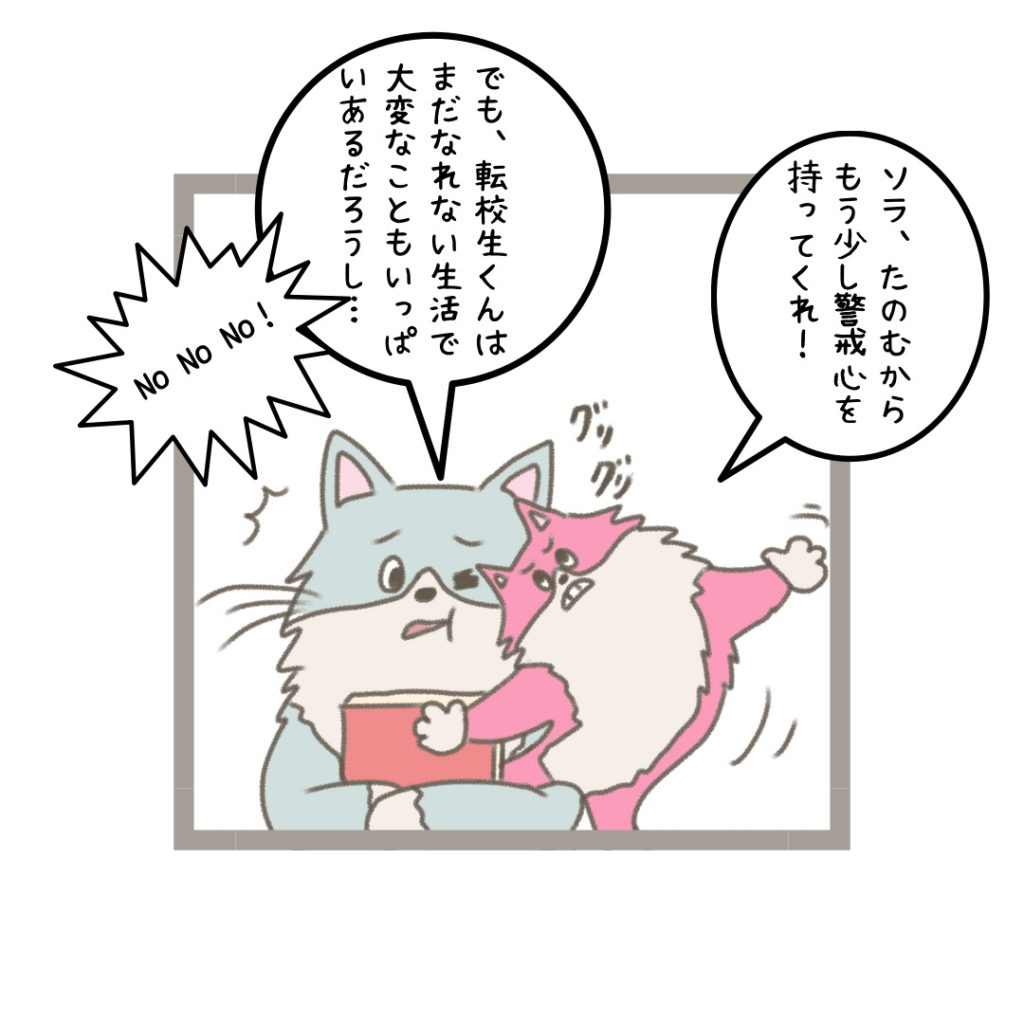 ソラくんのクラスには優しい子がたくさんいるという設定なので、ソラくんが一人でモジモジしていても必ず学級委員長やそのお友達が声をかけてくれます。